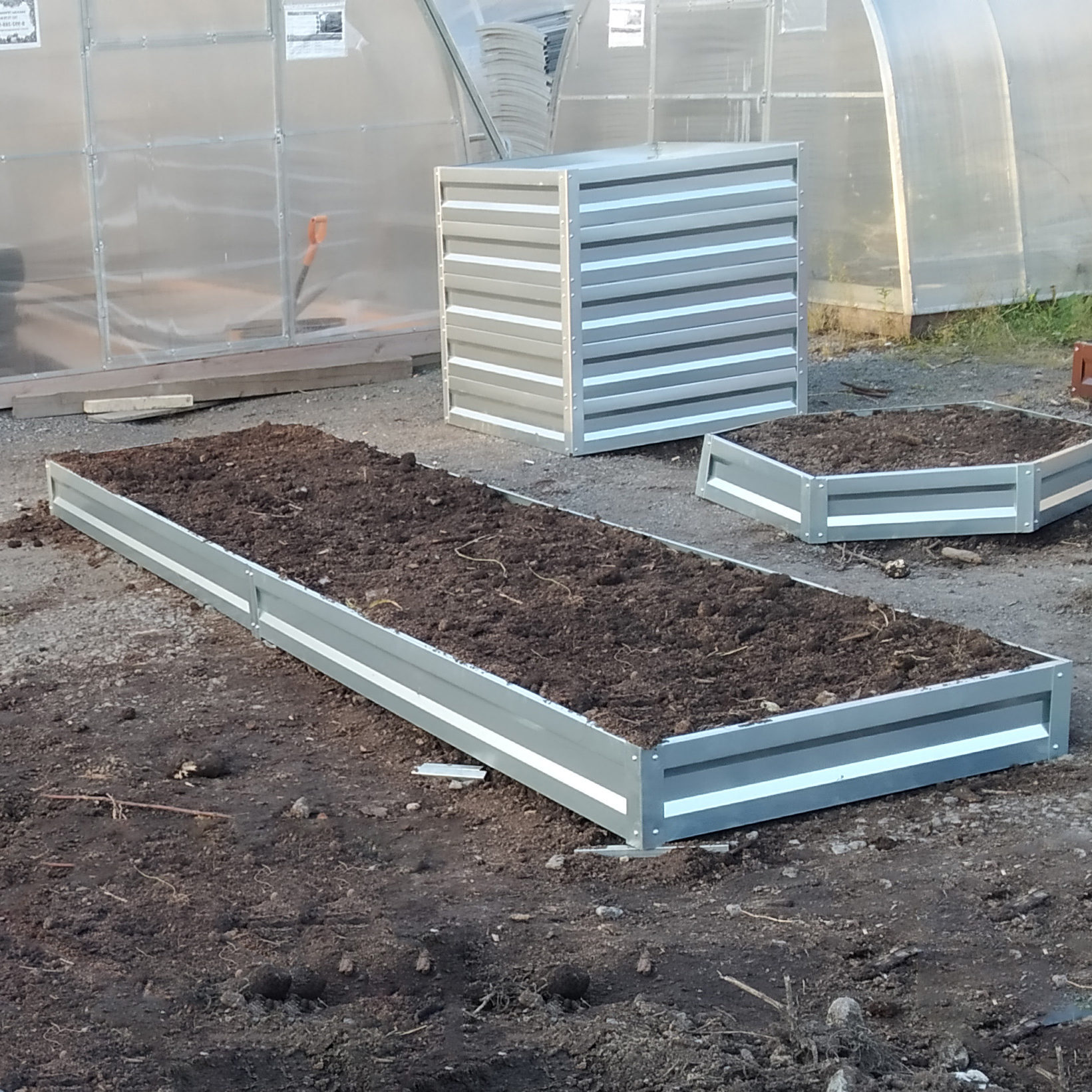 Грядки изготовлены из оцинкованного металла толщиной 0,5 мм.
