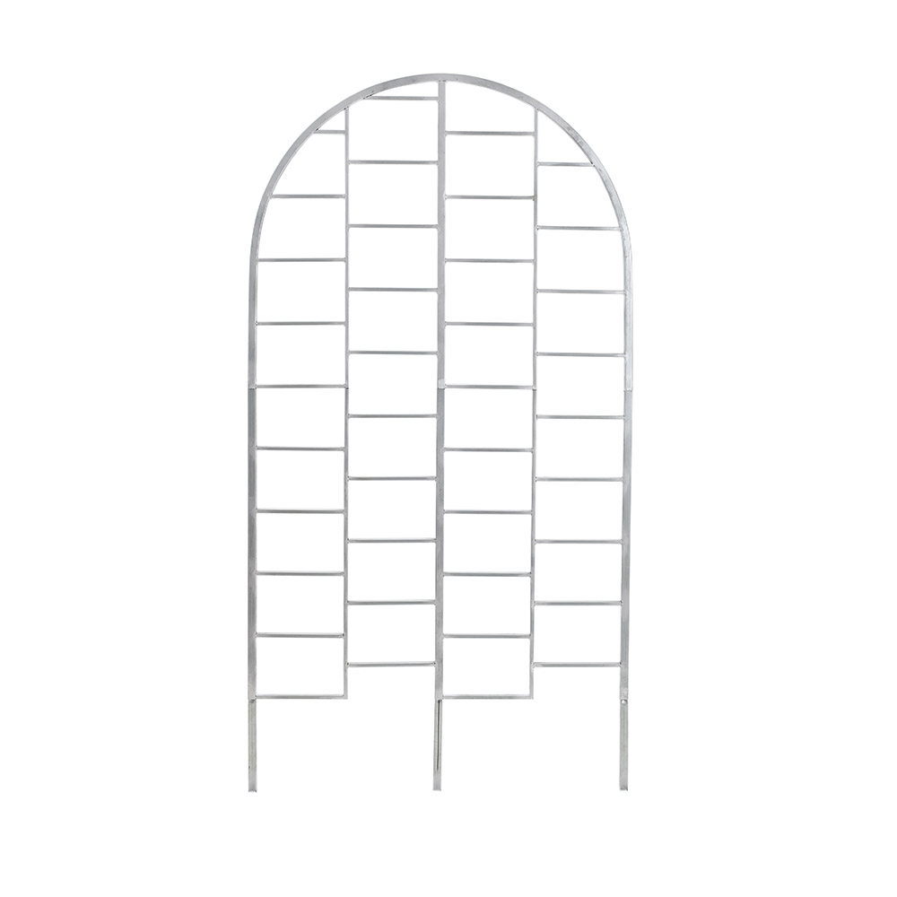 Внимание! Новая вариация товара: в верхней части изменен рисунок. Стало проще собирать: состоит всего их двух секций+ножки. Также новые размеры упаковки: 93 см*82 см*5 см. Вес с коробкой — 6,2 кг, вес без упаковки — 4,95 кг. Шпалера для цветов, вьющихся растений и винограда из оцинкованной трубы. Высота над землей — 150 см., ширина — 92 см. Высота вместе с ножками 172 см, длина ножек — 22 см.